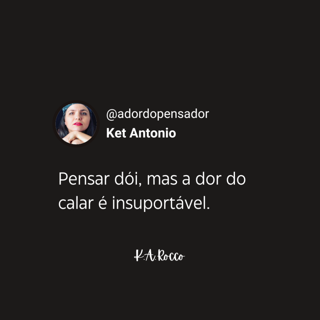 Pensar dói, mas a dor do calar é insuportável. Compartilhe esse post! Ket Antonio Artigos: 21 Post anterior A Dor do Pensador Próximo Post Solidão